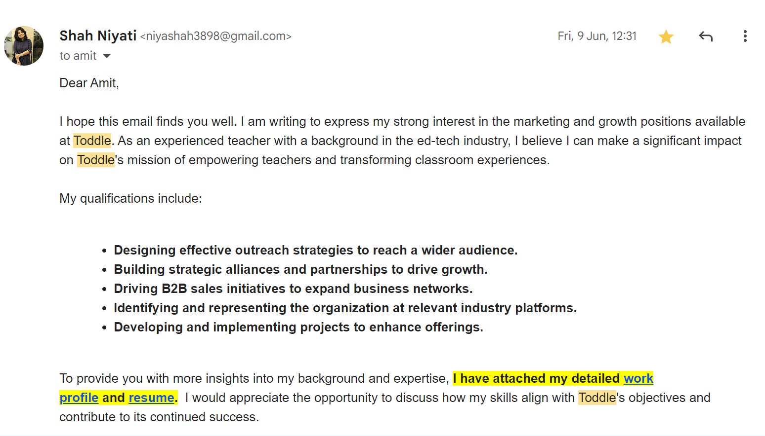 -No substitute for knowing what you're talking about. For example, if one is applying for an event marketing position, then they need to detail it out on the execution very well as if they are already responsible for the job, LOVED your Toddle PoW btw